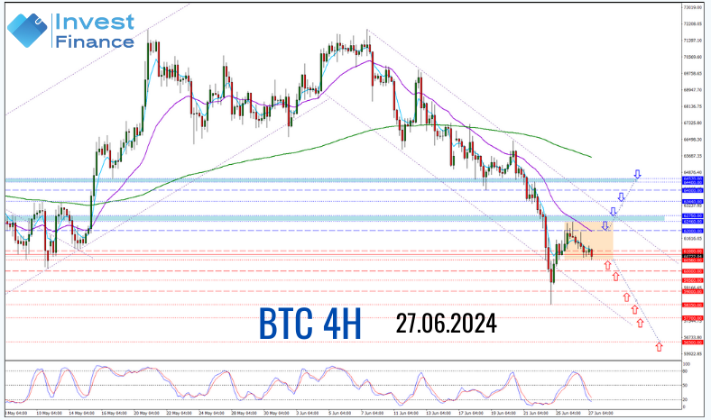 Para alcanzar estos niveles de soporte y el límite inferior del rango lateral, los vendedores deben romper y consolidarse por debajo de $60,560. Este es el objetivo principal de hoy, respaldado por las medias móviles EMA de 200, 26 y 5, que ejercen presión bajista sobre los precios, y el oscilador estocástico, que indica una zona de venta.