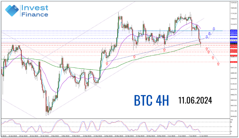 El escenario principal para hoy sigue siendo bajista, aunque es probable que los precios se consoliden después de un fuerte movimiento de venta. Se espera que los precios se estabilicen entre $66,700 y $68,000.